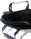 The bag has two main compartments, with an interior slip and zip pocket, with an additional front and back zip pocket