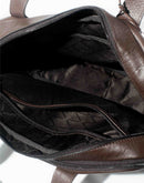 The bag has two main compartments with an interior zip pocket and two slip pockets, with an additional back and front zip pocket