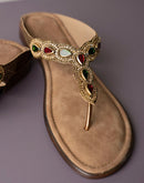 This flat sandal is adorned with clear stones that catch the light just right - effortless sparkle for your everyday step