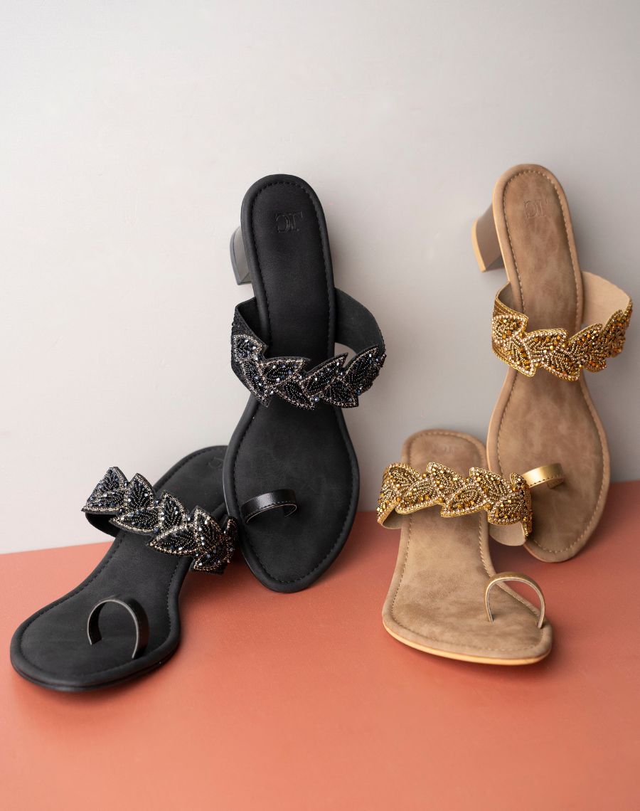 A timeless classic, reimagined. Handcrafted with a genuine leather sole and adorned with delicate stonework, this Kolhapuri blends traditional artistry with a refined sparkle.