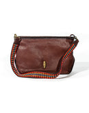 Trendy bag with a detachable strap covered in bead work.