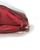 The bag has one main compartment with one interior zip pocket and a back zip pocket