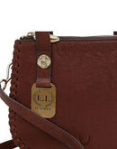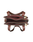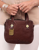 The Hope Satchel by Hidesign is handcrafted from East India vegetable-tanned leather, blending style and functionality. It features intricate thong detailing on the edges, an embossed logo, unique sandcast brass hardware, and a signature East India brass plate. Minimal styling is needed, making it a versatile choice for everyday use.
