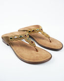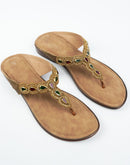 This flat sandal is adorned with clear stones that catch the light just right - effortless sparkle for your everyday step