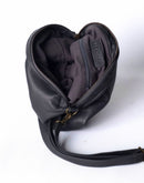This crossbody has one main compartment, with an interior slip and zip pocket