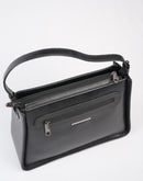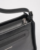 The structured top handle bag in black and red features a sleek silhouette with a refined finish. Designed for timeless appeal, it combines elegance and versatility in a modern form.