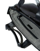This laptop sleeve has a front slip pocket. The interior of the laptop has one main compartment, with a slip and zip pocket. In addition, the sleeve also has a back zip pocket