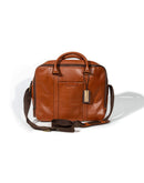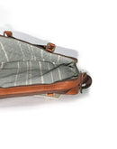 The bag has one front slip pocket, two main compartments and one interior zip pocket as well as one back zip pocket