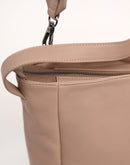 The spacious everyday floppy tote, with a wide open interior and a spacious back zipper pocket