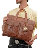 Fort Worth 02 is a rugged men's crossbody bag from Hidesign's Wild West collection. Handcrafted in full-grain vegetable-tanned leather, it features a sand-casted brass buckle and is spacious enough to carry a 14-inch laptop.