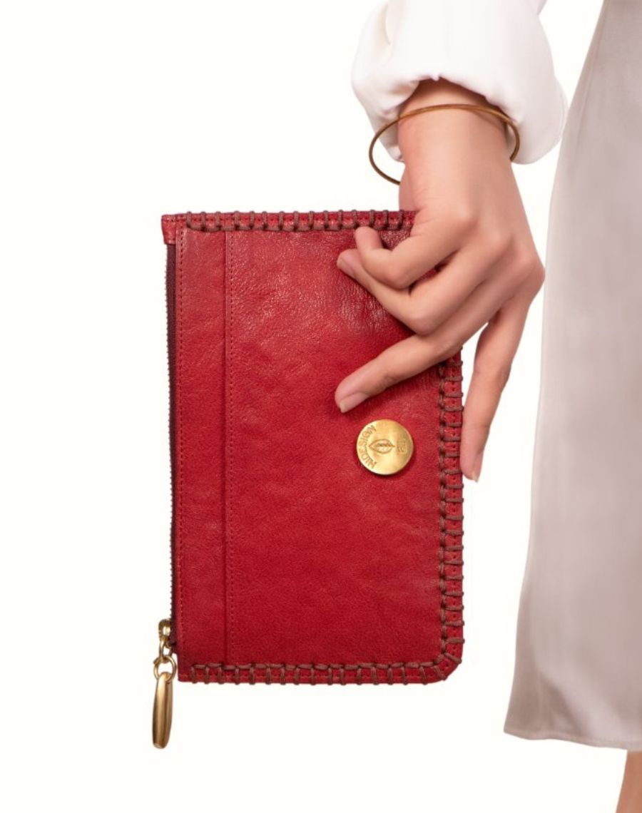 This Hidesign Morocco W5 sling wallet, handcrafted in vegetable tanned leather, is a fun, flirty accessory ideal for casual days out with friends or evening events. The wallet's compact yet functional design, featuring a stylish half-chain, half-leather strap, makes it perfect as a night bag or for late work dinners.