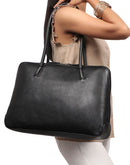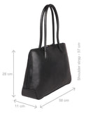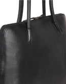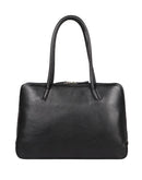 The bag has two main compartments with a middle zip compartment. The bag also has a back zip pocket