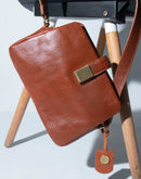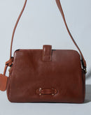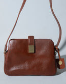 A stunning crossbody bag from Hidesign's On the Road collection. It’s finished with a sand-casted brass lock and a woven detail on the strap