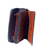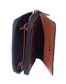 The wallet has two main compartments with 2 money compartments, 2 slip pockets, and 6 card slots
