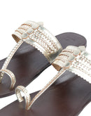 Handcrafted from genuine leather, the unique woven detailing on these Kolhapuri sandals offers a blend of traditional artistry and bohemian charm.