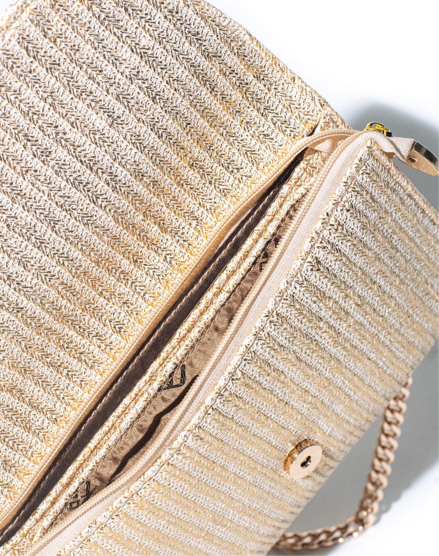 Secured with a reliable top zip closure and accented with a chic tassel puller and a partial chain strap, it is designed for the modern woman on the go